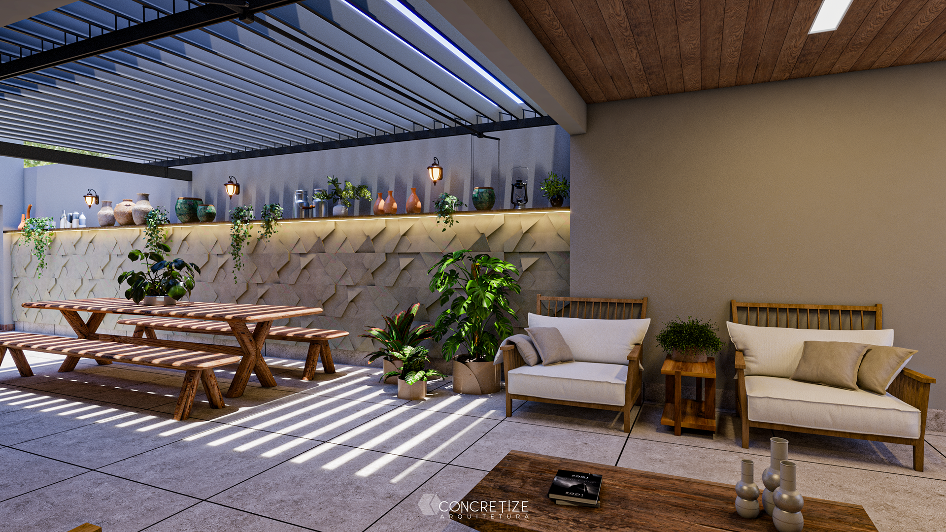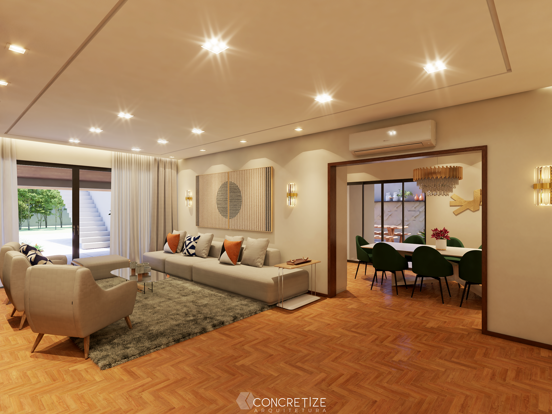 O pedido dos moradores era claro: manter a alma da casa, mas adaptar os espaços para a nova fase da vida. Foi necessário ampliar a garagem para 4 carros, garantindo segurança também para os filhos, hoje adultos, e criar um muro baixo com portão de pedestre, trazendo mais proteção sem perder a leveza da fachada.
