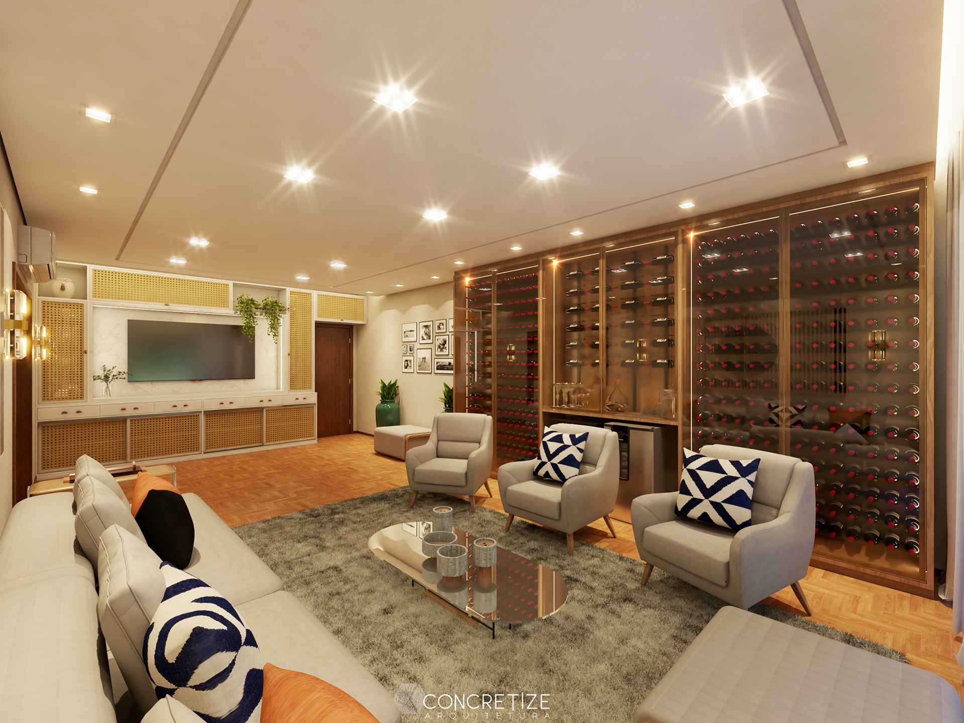 Na parte interna, a casa ganhou mais integração e modernidade, acompanhando o crescimento da família, com espaço especial para os vinhos que eles tanto amam, um jardim cheio de plantas, um cantinho para os netos brincarem e banheiros renovados — mais atuais, sem perder o toque clássico.