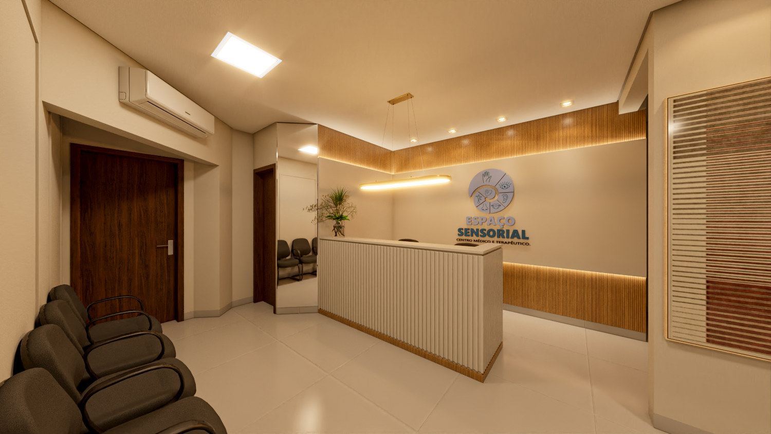 Depois de já termos desenvolvido outra unidade da clínica, essa veio com um novo desafio: um espaço voltado ao público adulto. A proposta seguiu por um caminho mais sóbrio e elegante, com tons neutros e madeira, bem diferente da unidade infantil, que era cheia de cores e estímulos visuais.