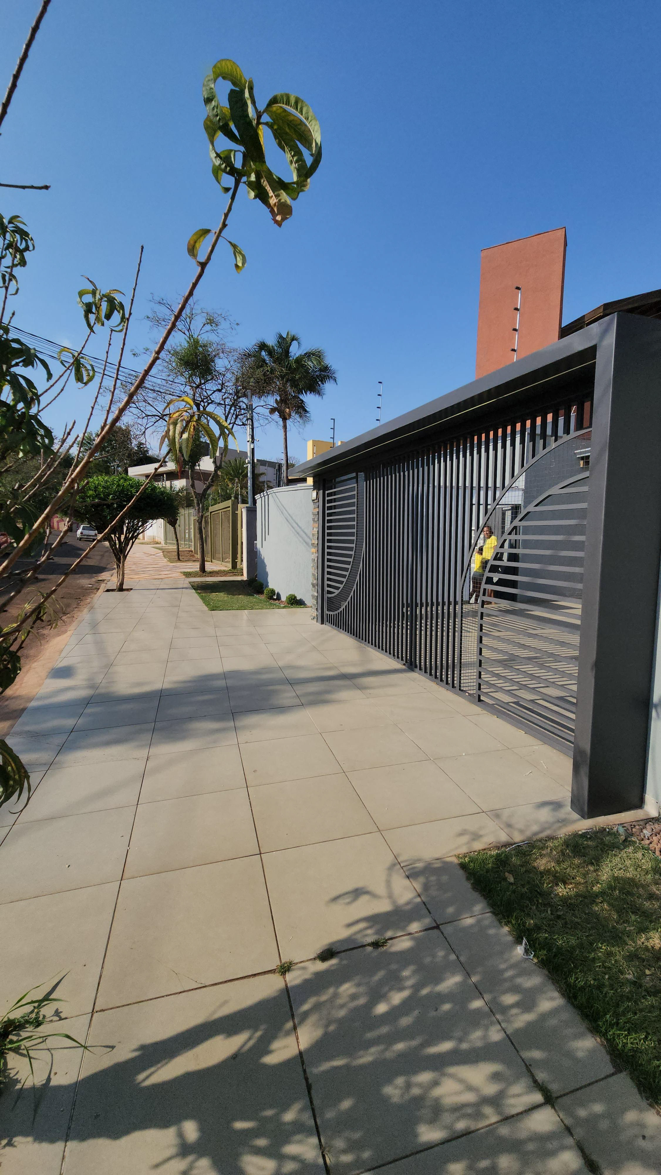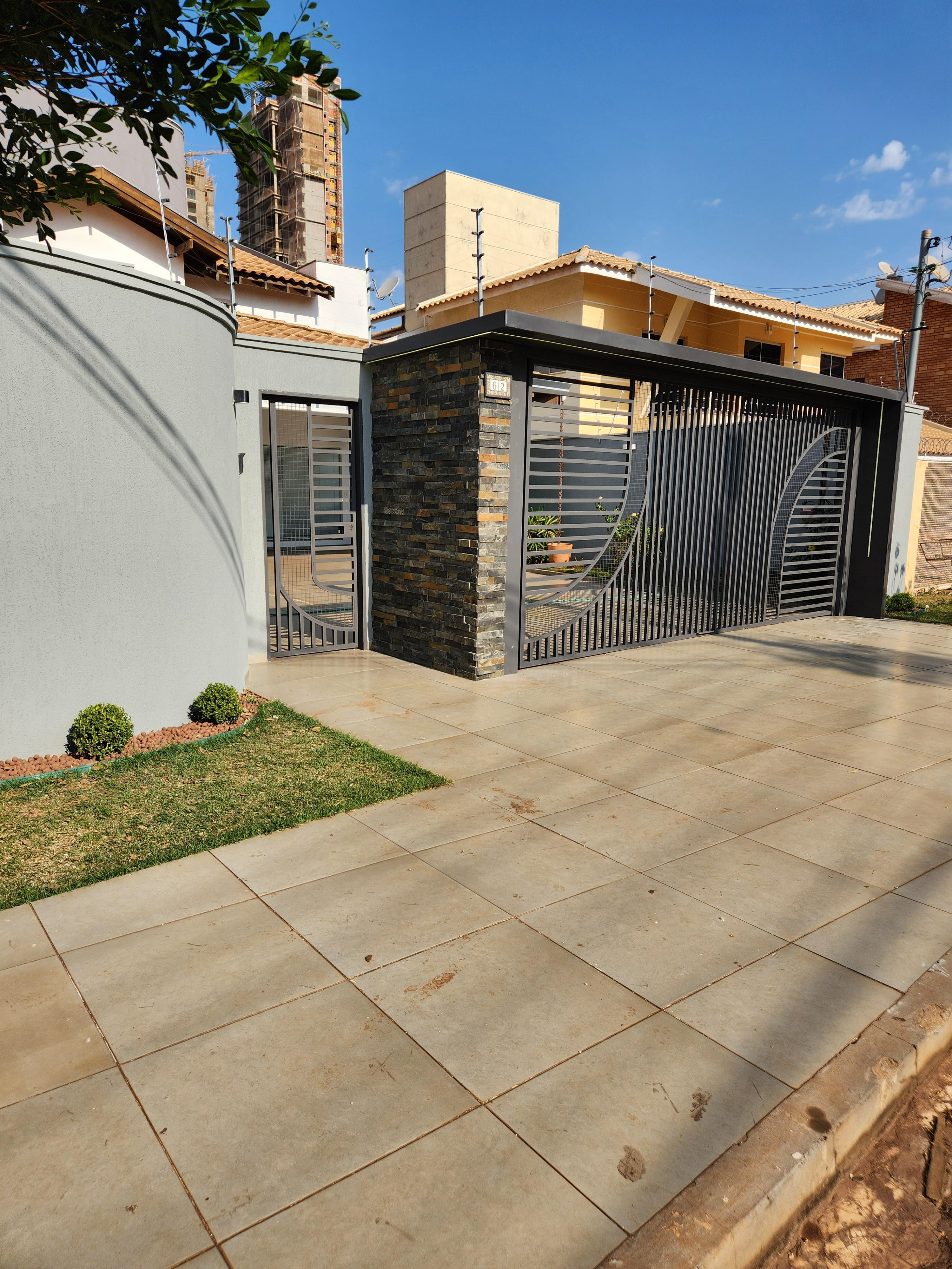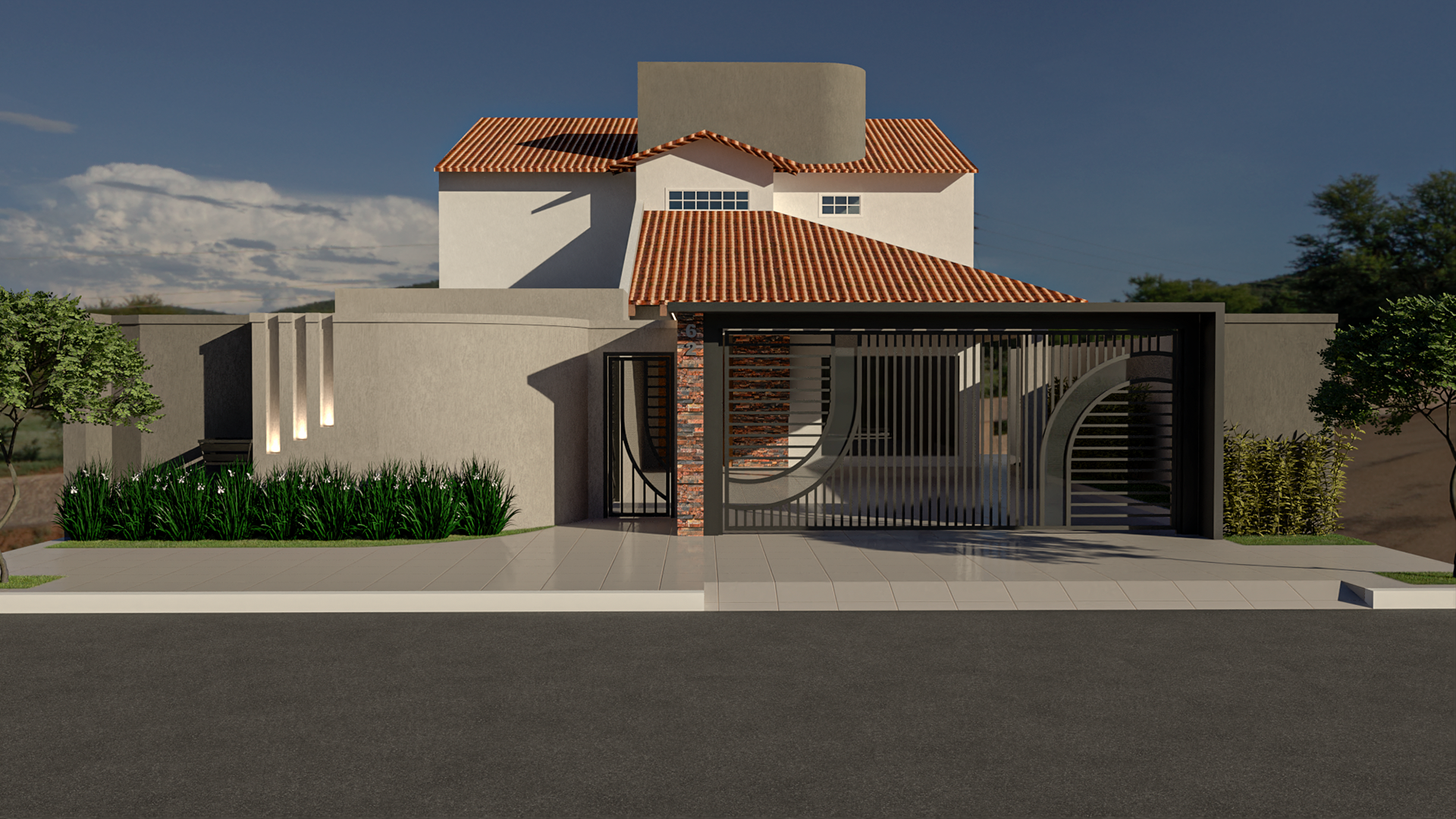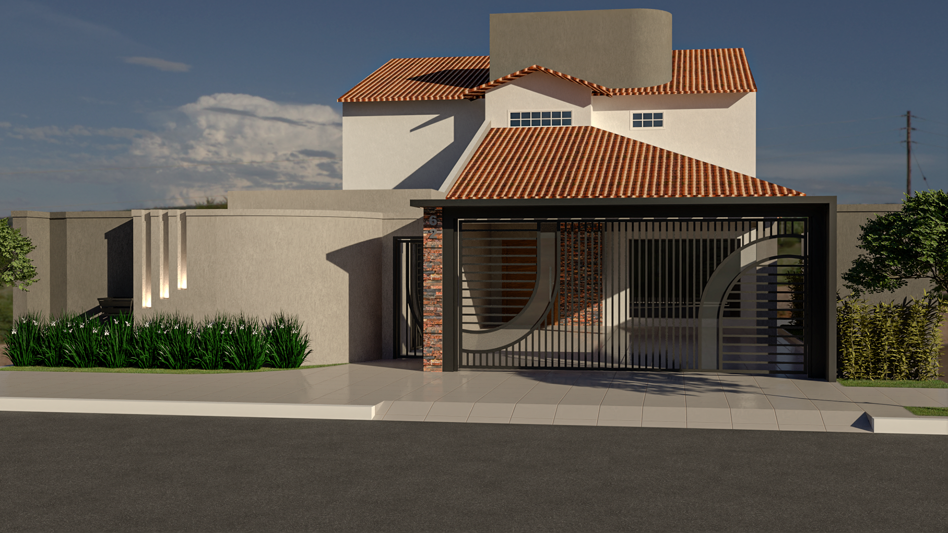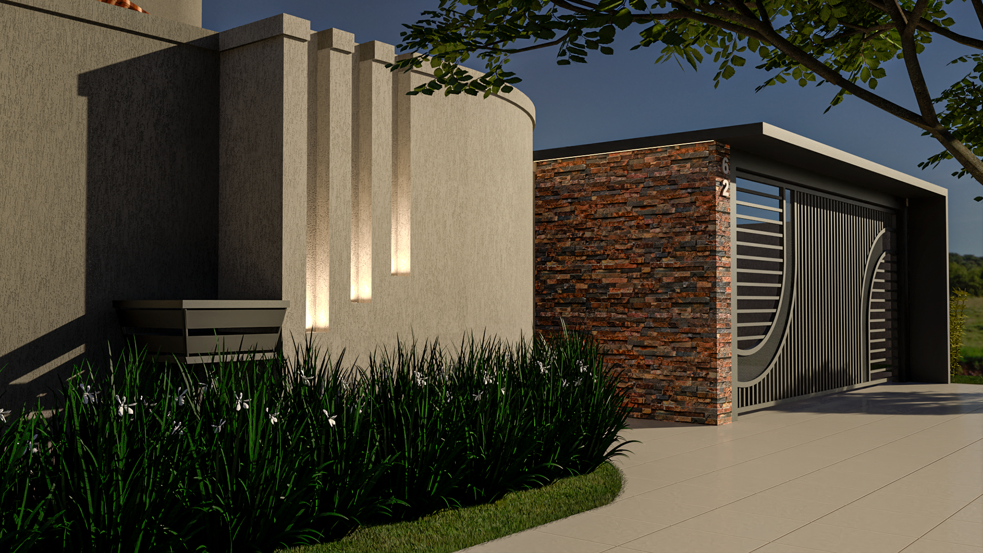Criamos um detalhe de serralheria no portão, com iluminação embutida, trazendo mais personalidade e sofisticação. No muro e na porta de entrada, o uso da pedra ferro elevou o visual e deu um ar mais requintado à fachada. Para fechar, incluímos um ponto de iluminação no muro do jardim, garantindo destaque e charme também no período noturno 🌙