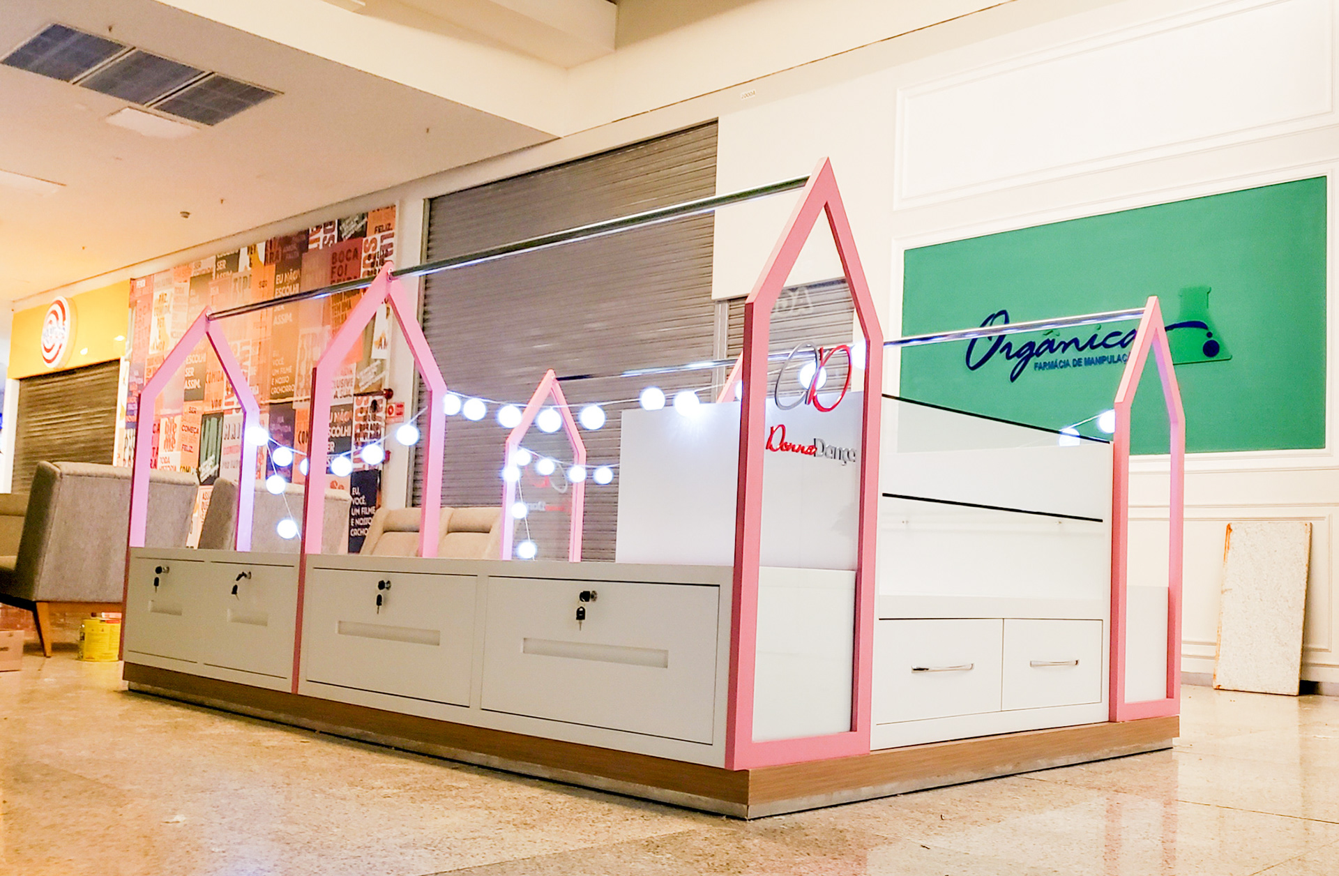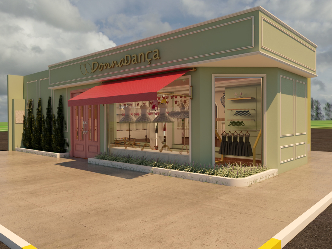 Esse é um projeto de reforma comercial, propomos uma nova fachada e interiores para a fofíssima lojinha de roupas e acessórios para ballet. Para a mesma cliente também criamos um quiosque no shopping.